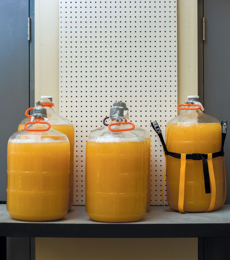 Their flagship cider, known around their warehouse as “semi-dry,” is made from a proprietary blend of apple juice from the Pacific Northwest. Apple cider can ferment without added yeast, but the process can take many months. Double Shovel, like most commercial cider operations, adds a special yeast to speed things up (they tested numerous yeasts before settling on one). The cider ferments for a little more than a month, then they filter it and add carbonation, according to Jerry Lau, the head cider maker. Acids and tannins are the main flavor-makers in cider that give it tartness and bite. Their flagship cider is much drier than most popular commercial ciders. It also contains roughly 20 percent of the sugar, making it lower in calories.