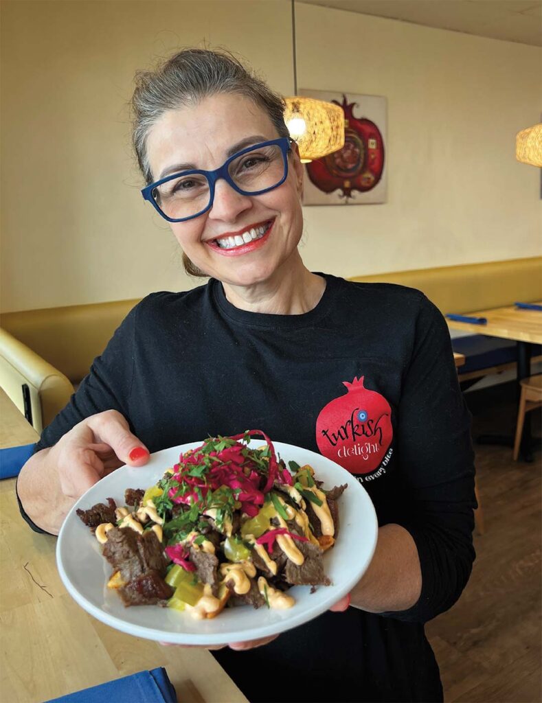 The kitchen cranks out Turkish cooking with a consistent vision. Customers can expect rich flavors and a seasonal menu. The kitchen crew runs the restaurant like a family kitchen scaled up for a city. A meal at Turkish Delight can be a quick stop or a multi-course affair. As Zeynep hustled through the kitchen on photoshoot day, she whipped up döner fries and thrust the fragrant, steaming plate into my hands. It’s a favorite treat and one they only do for dine-in because the bed of crisp potatoes is best served fresh. It’s a full meal of loaded fries with shaved döner meat, basil yogurt, house sauce, and pickles (bonus, it’s gluten-free). I prefer to share it with someone, and it definitely requires a cup of Turkish Coffee afterward.