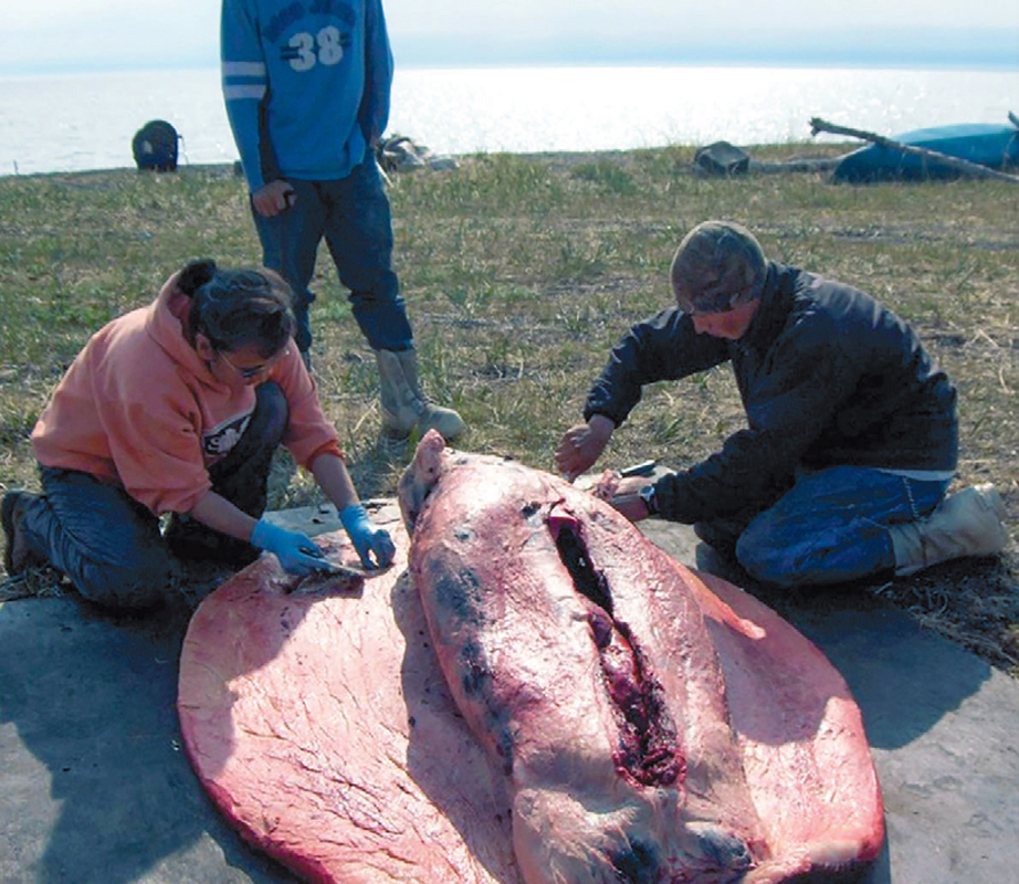 Harris says that he received his field education from his home in Sisaulik. It was there, 14 miles across the Sound from Kotzebue, that he learned to hunt for ugruk and natchiq, the seals that provided for his family. The meat from these seals is high in iron, and the oil from their blubber is full of vitamins A and Omega 3 and 9 fatty acids. Harris was able to live in Sisaulik and support his family with hunting, bartering, and trapping fur until the value of furs diminished as fuel costs rose. This pressure led Harris to move his family into Kotzebue in the late 1980s when he found work with his regional tribal health corporation comprised of 12 tribes named Maniilaq Association for the Iñupiaq prophet and healer. Like so many Indigenous people in Alaska, Harris describes his existence as one of ‘’living in two worlds,” but being in conversation with him makes clear that his values are rooted in the Iñupiaq way of life, and his work conveys these values to all who witness and benefit from his efforts.