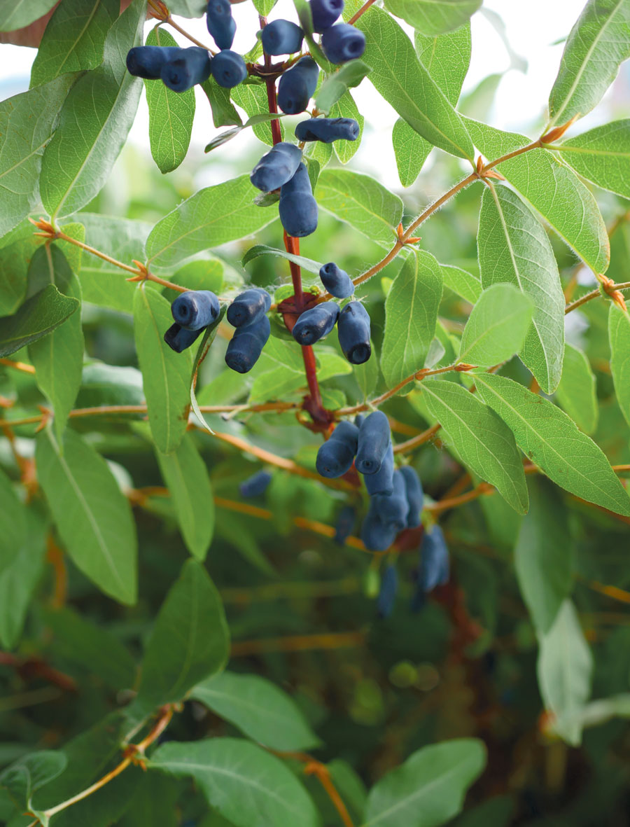 Even though they grow well here, it’s surprising how many people still have never heard of haskaps or can’t identify them. “About 10-15 years ago, the Master Gardeners of the Tanana Valley decided to make a collective purchase of these honeyberries/haskaps, and many of the members planted them for trials. They were an overwhelming success and can produce gallons of fruit on just a few bushes,” says Holloway.