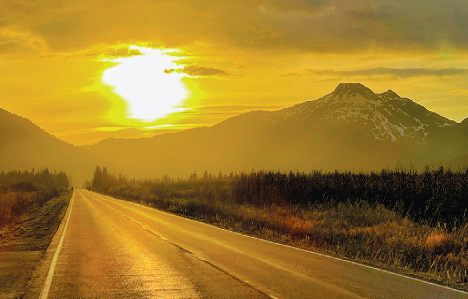 The Copper River Highway juts through this delta wetland in a 36-mile-long route that runs west to east. It is the only large highway in the region and connects residents to an essential airport, national forest, and Native lands.